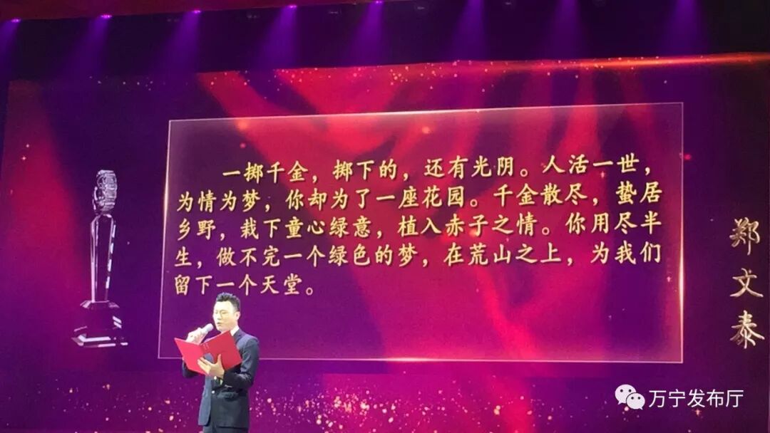 郑文泰先生获评“感动海南”2017十大年度人物 发布时间:2018/7/2 14:11:31 文章来源:万宁发布厅 点击数:3853 每逢岁末年初,感动如期而至。2018年1月16日晚,“感动海南”2017十大年度人物颁奖典礼在海口举行。观众从四面八方赶来,向一个个高尚的灵魂致以敬意。耗尽毕生积蓄,打造绿色之梦的郑文泰获评“感动海南”2017十大年度人物。